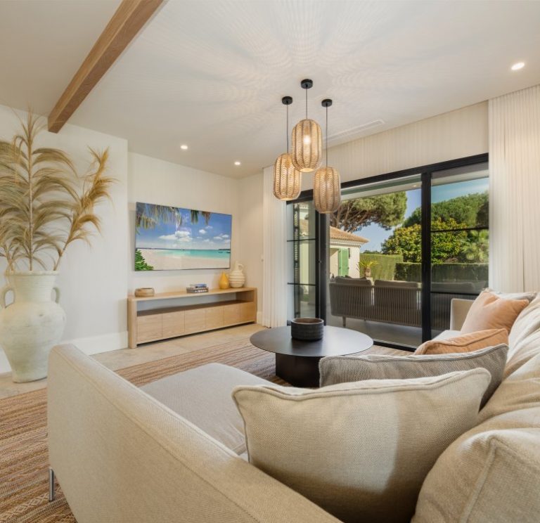 The villa enjoys a privileged location in East Marbella – less than a minute’s walk from one of Marbella’s finest beaches and surrounded by renowned beach clubs and restaurants such as Luuma Beach, Dune Beach, Bono Beach, and Restaurante Las Flores. It is also a short drive to Marbella’s Old Town (10 minutes), Puerto Banús (20 minutes), and the famous Golden Mile, with its exclusive boutiques, fine dining, and vibrant nightlife. For golf enthusiasts, Santa Clara Golf and Marbella Golf Country Club are just minutes away. Malaga Airport is reachable in about 40 minutes.